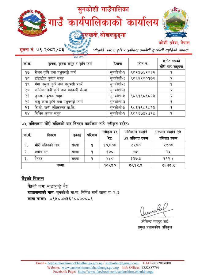 मौरी सहितको घार वितरणको लागि लाभग्राहि छनोट सम्बन्धी सूचना।