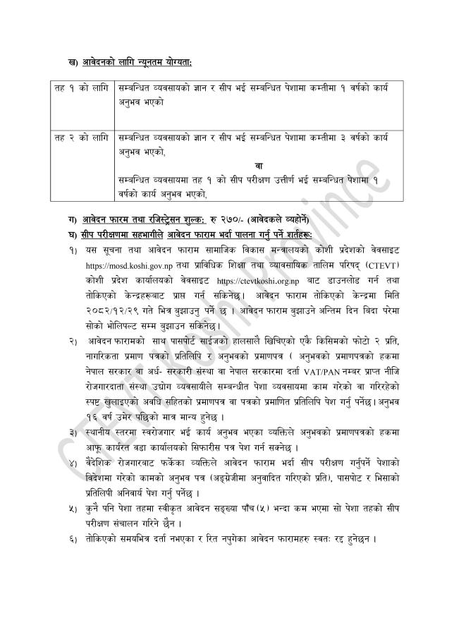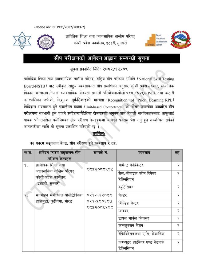 सीप परीक्षणको आवेदन आह्वान सम्बन्धी सूचना ।