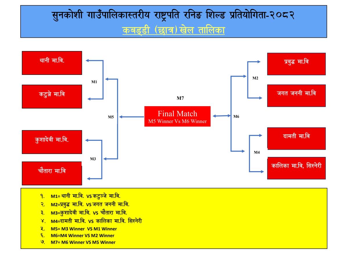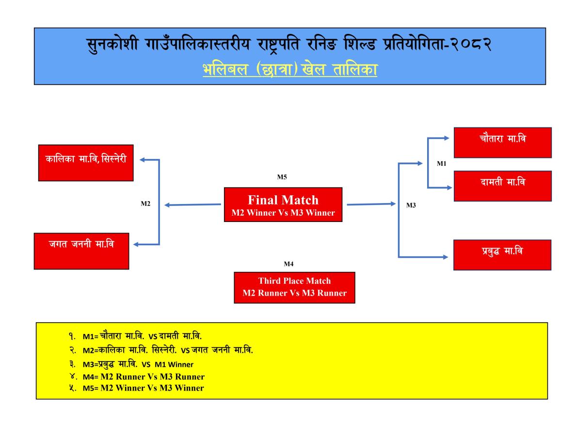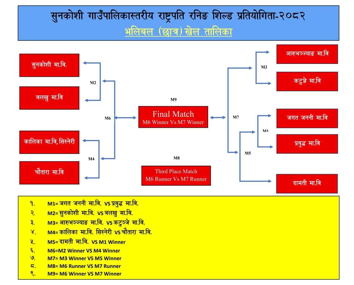 सुनकोशी गाउँपालिका स्तरीय राष्ट्रपति रनिङ शिल्ड प्रतियोगिता -२०८२ को खेल तालिका ।