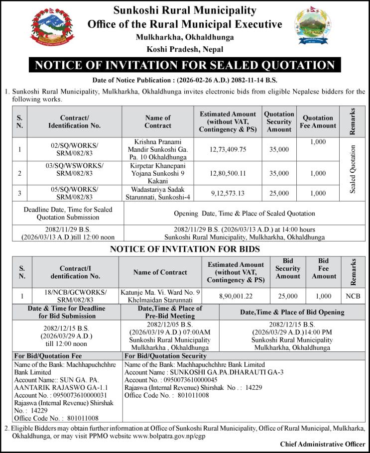 NOTICE OF INVITATION FOR SEALED QUOTATION