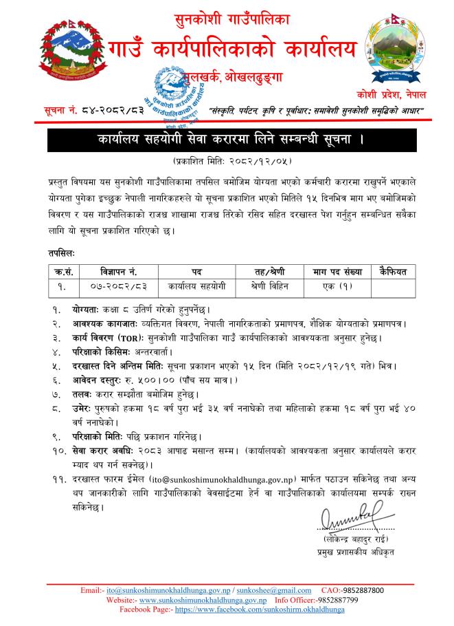 कार्यालय सहयोगी सेवा करारमा लिने सम्बन्धी सूचना ।