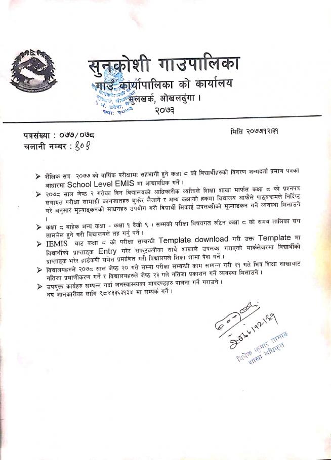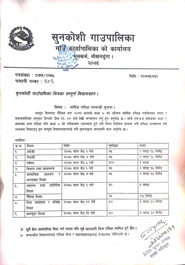 बार्षिक परीक्षा सम्बन्धि सूचना ।