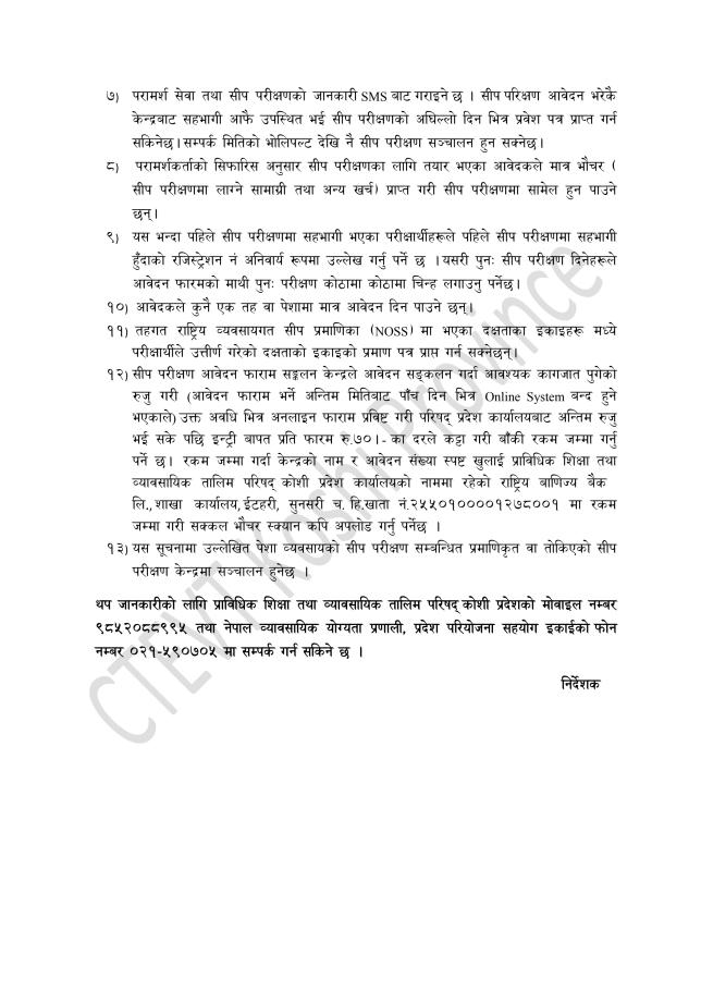 सीप परीक्षणको आवेदन आह्वान सम्बन्धी सूचना ।