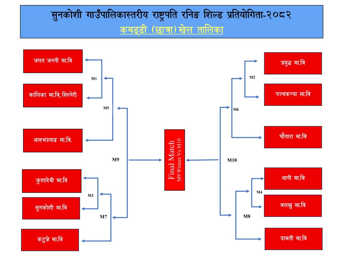 सुनकोशी गाउँपालिका स्तरीय राष्ट्रपति रनिङ शिल्ड प्रतियोगिता -२०८२ को खेल तालिका ।