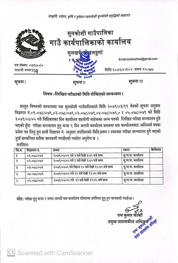 सुनकोशी गाउँपालिकाको स्वास्थ्य का. स र गाउँपालिका का.स को सफल उम्मेदवारको नामवलि सम्बन्धि सूचना |